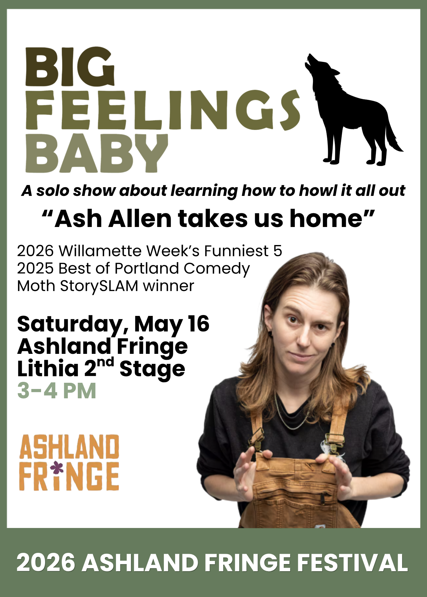 UPDATE: Opening Weekend sold out! Next chance to catch Big Feelings Baby is at the Ashland Fringe Festival, Saturday May 16.