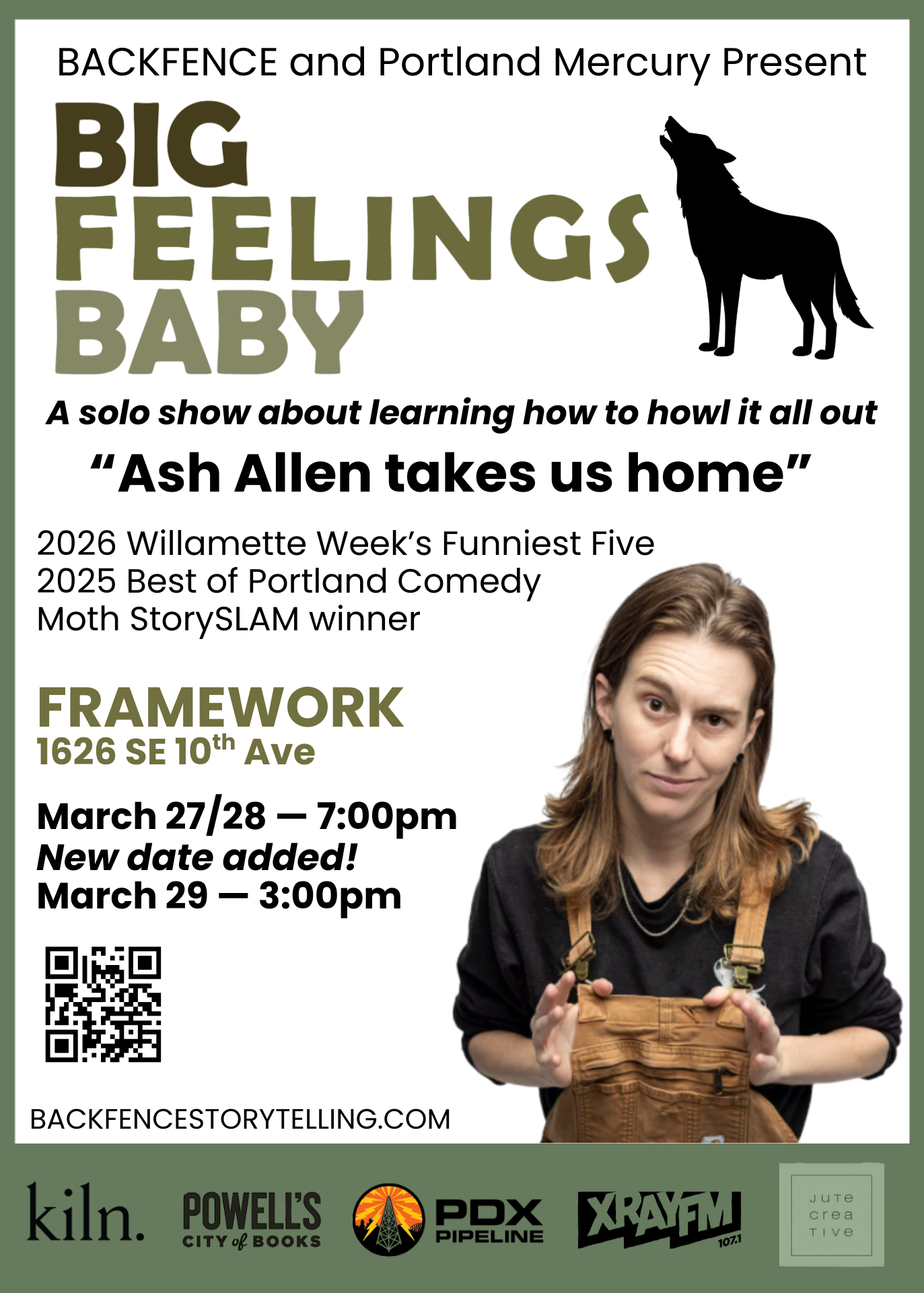 Her first solo(ish) show, BACKFENCE Presents: Big Feelings Baby, is premiering March 27th at Framework PDX.